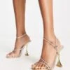 Simmi London – Sandali Con Tacco Argento Effetto Specchio Decorati