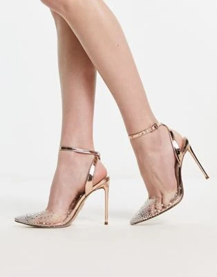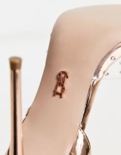 Public Desire Wide Fit – District – Décolleté A Pianta Larga Con Tacco Argento A Specchio Con Zip
