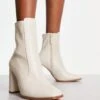 Public Desire Wide Fit – District – Décolleté A Pianta Larga Con Tacco Argento A Specchio Con Zip