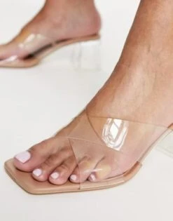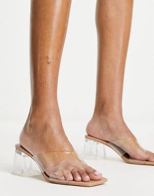 Stradivarius – Scarpe Con Tacco Medio Rosa Con Cinturino Posteriore