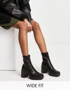 Public Desire Wide Fit – District – Décolleté A Pianta Larga Con Tacco Argento A Specchio Con Zip